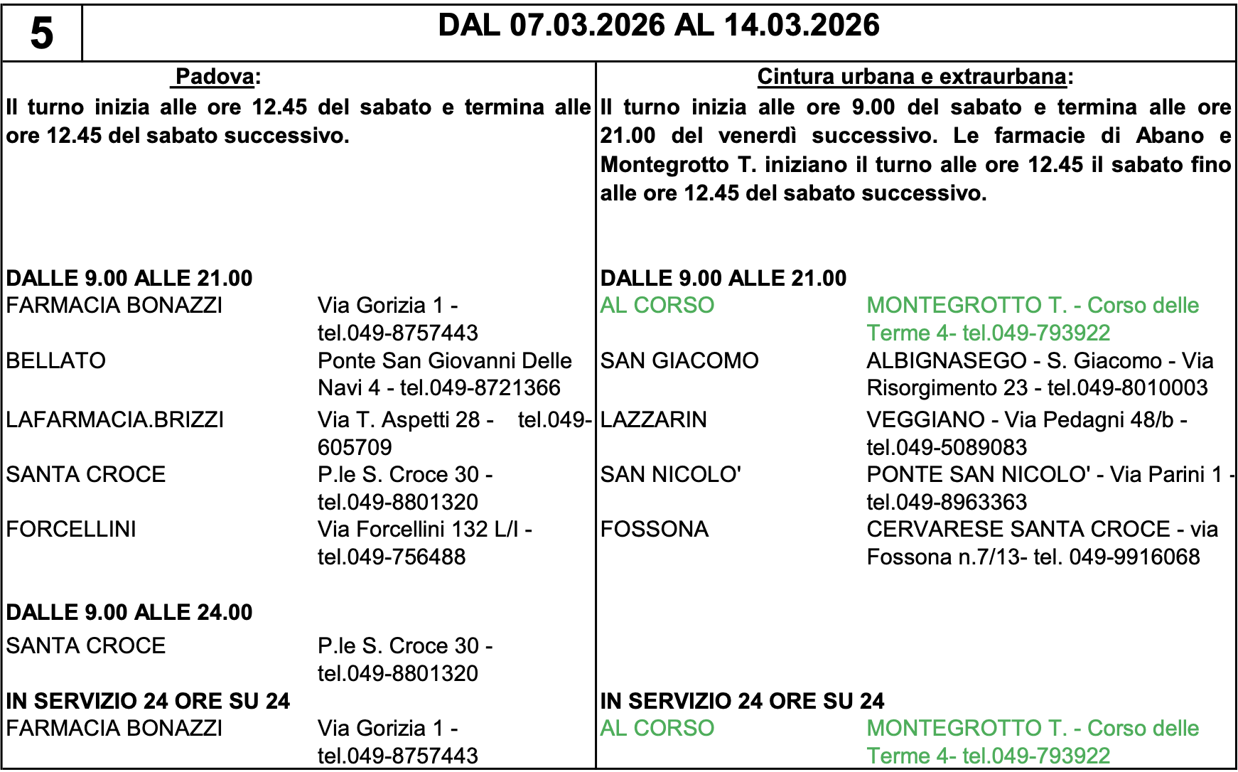 Da sabato 07 marzo 2026 a sabato 14 marzo 2026